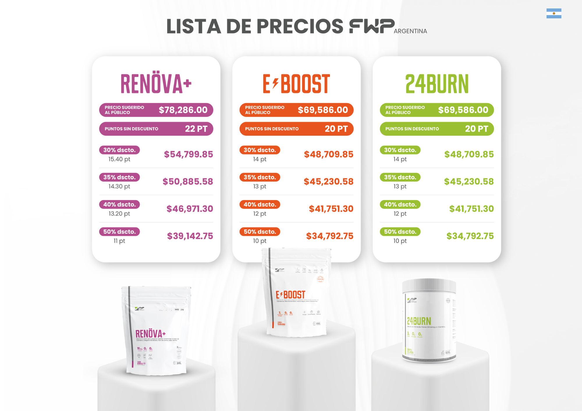 FWP ofrece capacitación continua, acompañamiento y un sistema estructurado, orientado a facilitar la incorporación de nuevos socios y su desarrollo progresivo. El portafolio de productos responde a necesidades reales del mercado argentino, como bienestar digestivo, control de peso consciente, energía y nutrición diaria, lo que favorece la recompra, la fidelización de clientes y la sostenibilidad del negocio en el tiempo.
