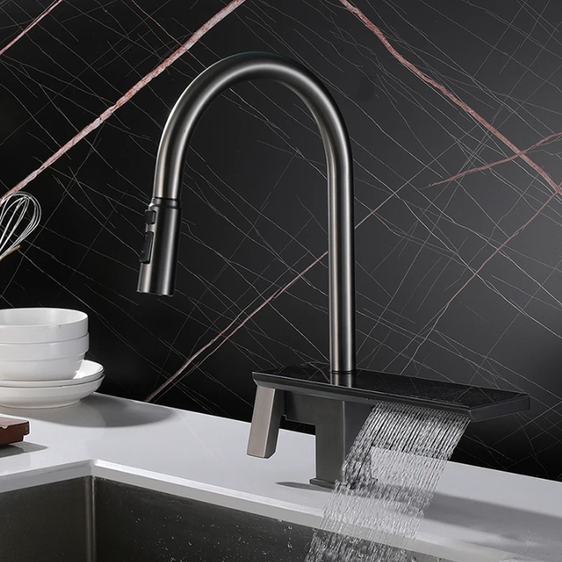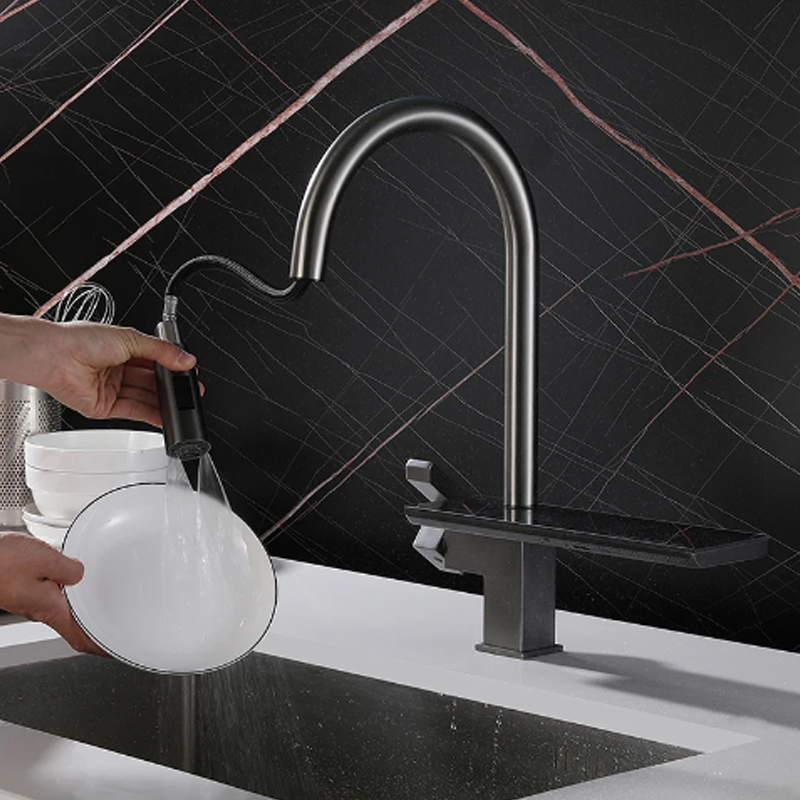 Además, su exclusiva salida de agua en cascada añade un toque de lujo, ideal para tareas específicas y para destacar en cualquier cocina contemporánea.