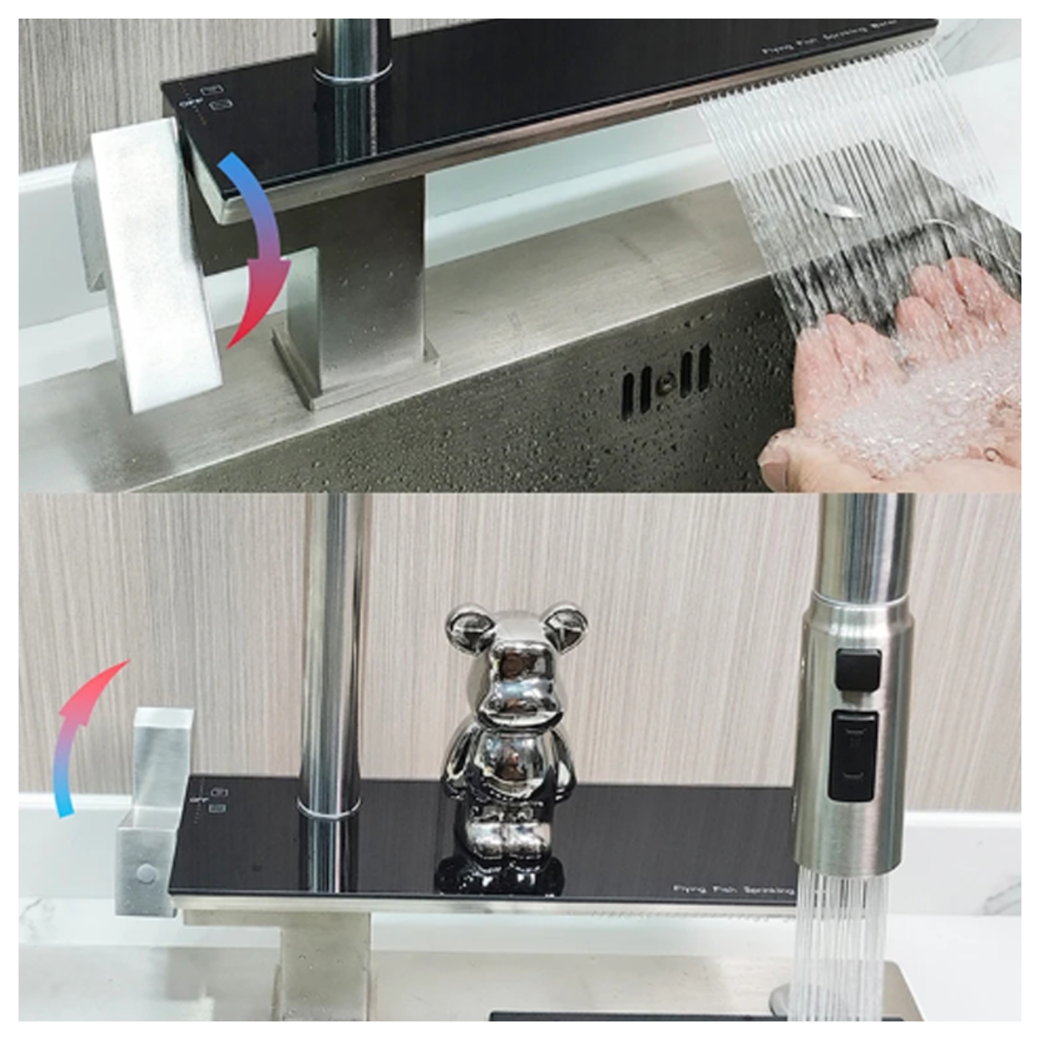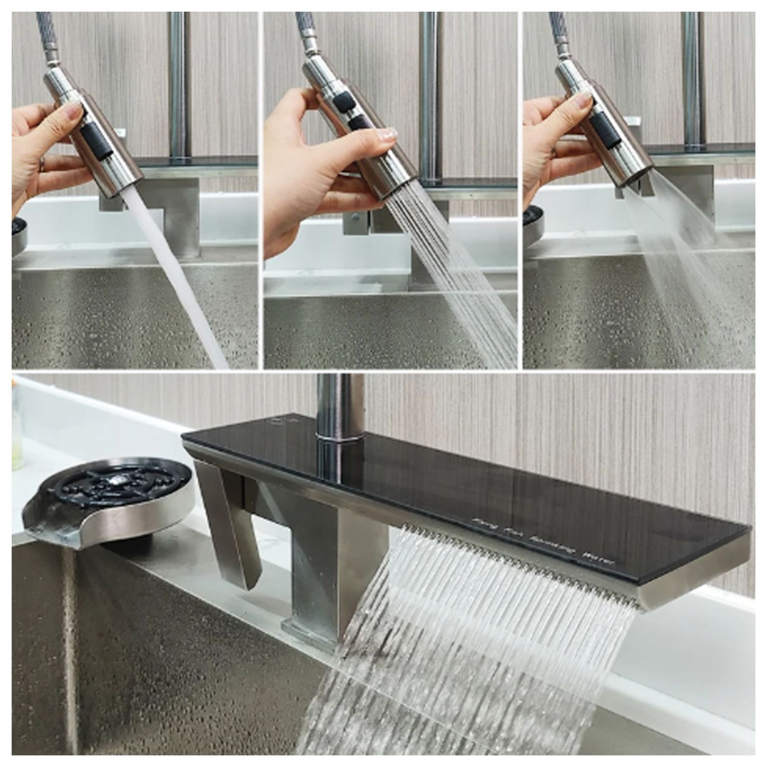 Diseñado para quienes buscan comodidad y eficiencia, este grifo incorpora un extensor flexible que facilita el lavado de utensilios grandes, junto con un sistema de cambio de chorro que se adapta a cada necesidad: desde un flujo suave hasta uno más potente.