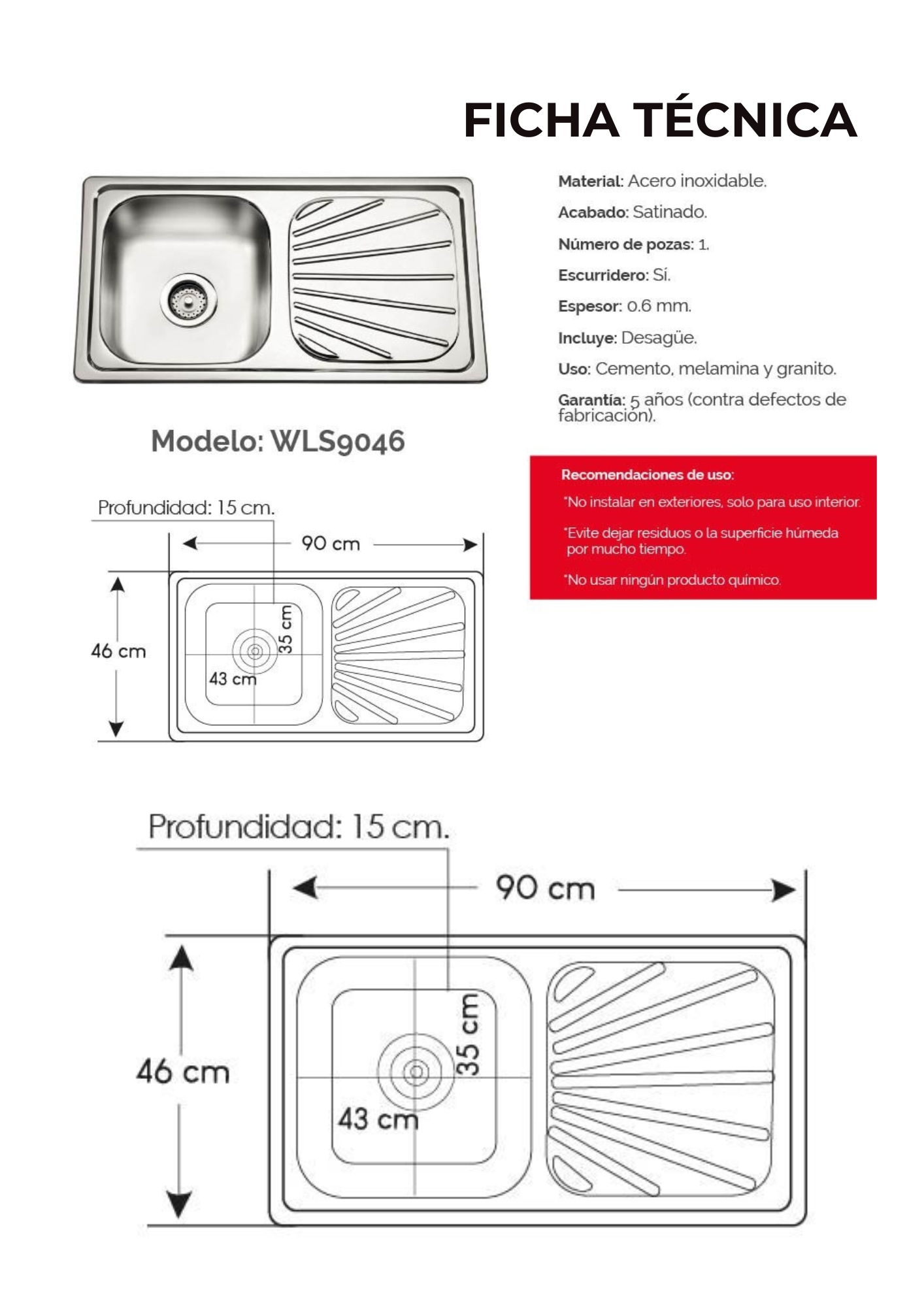 LAVADERO DE COCINA 1 POZA 90 CM X 46 CM SATINADO ACERO INOX.