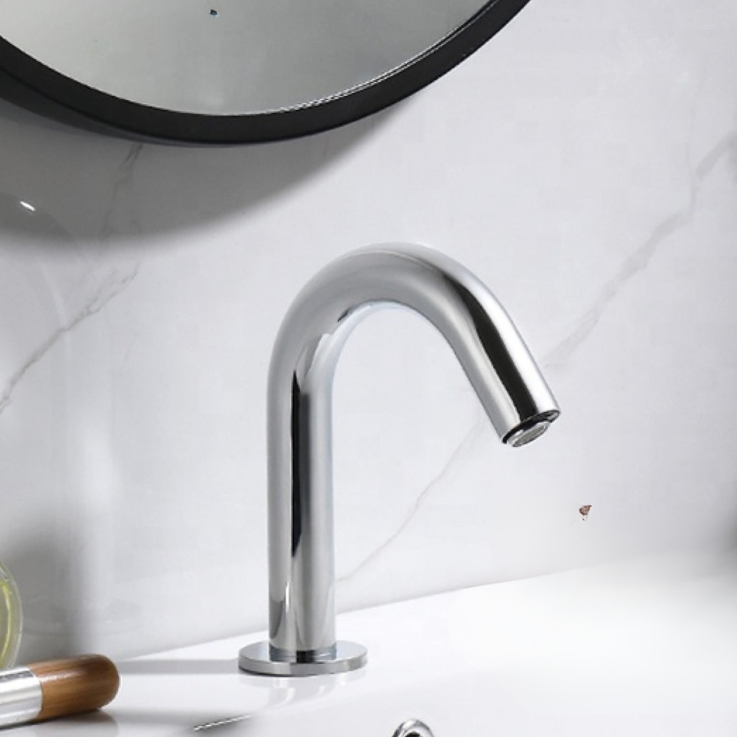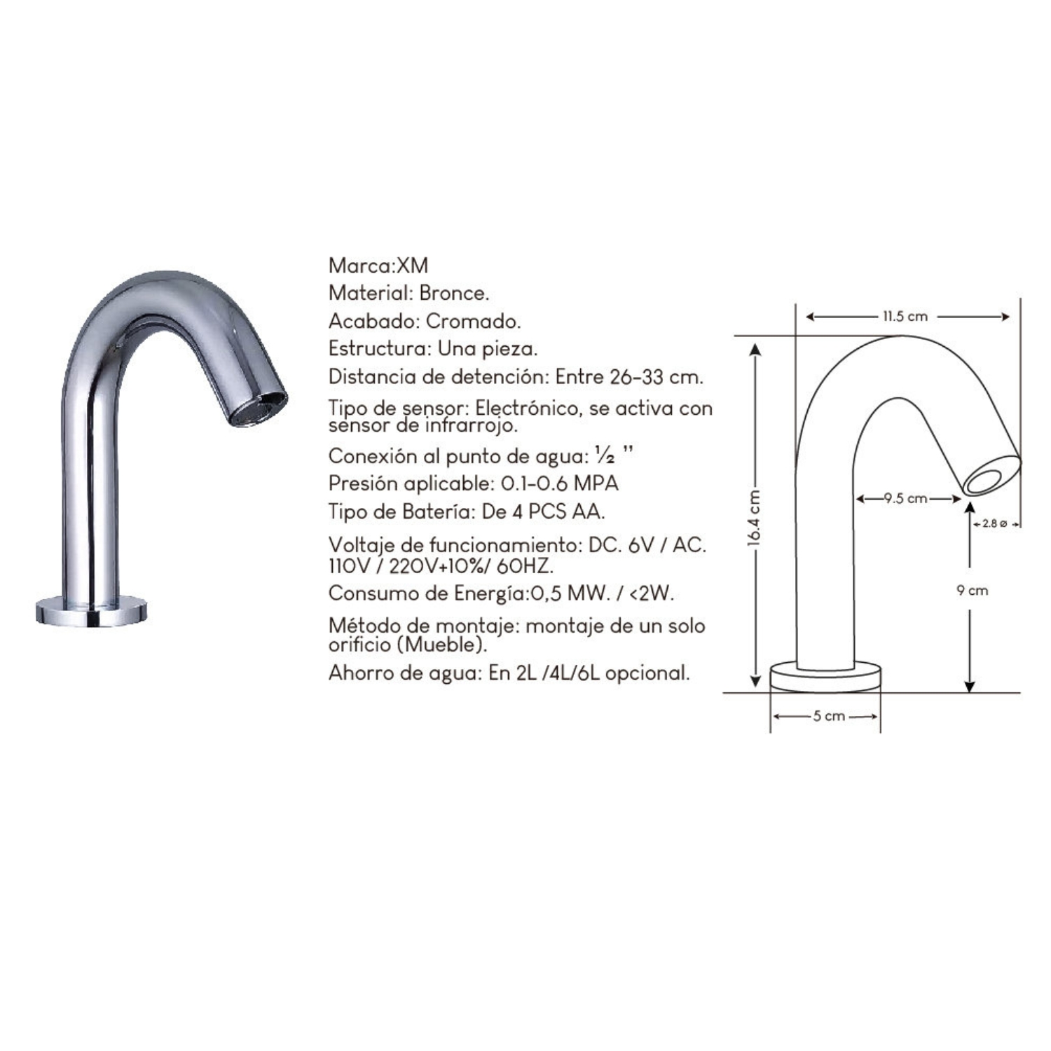 Grifería de diseño moderno y funcional, ideal para baños de alto tránsito en hospitales, clínicas, oficinas y espacios públicos. Su sistema de cierre automático con sensor electrónico ofrece un uso higiénico y práctico, evitando el contacto manual y optimizando el consumo de agua.