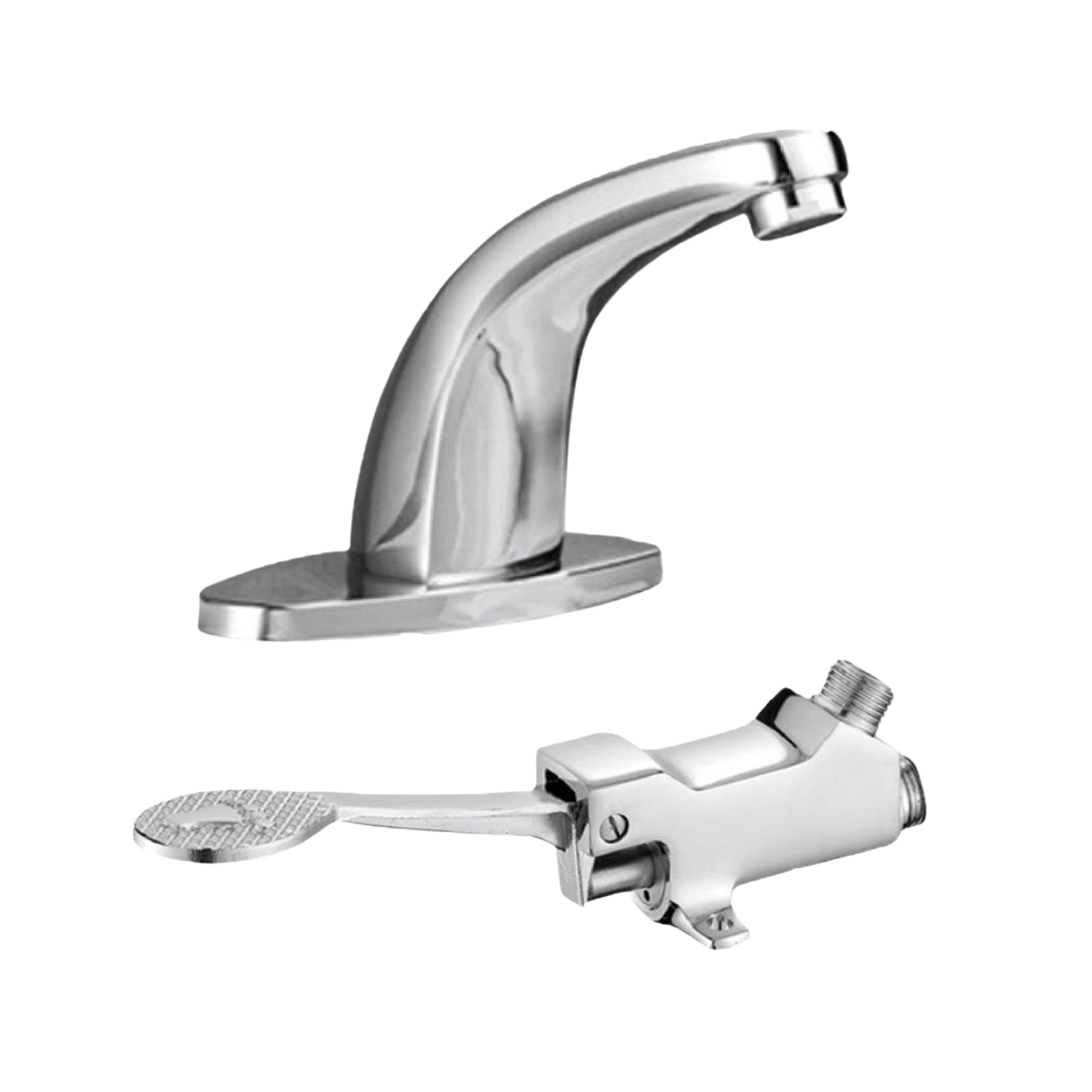 Su sistema de accionamiento por pedal permite un control del agua sin contacto manual, ayudando a reducir riesgos de contaminación cruzada. Además, cuenta con válvulas de cierre rápido fabricadas en bronce sólido, lo que garantiza un funcionamiento estable y de larga vida útil.
