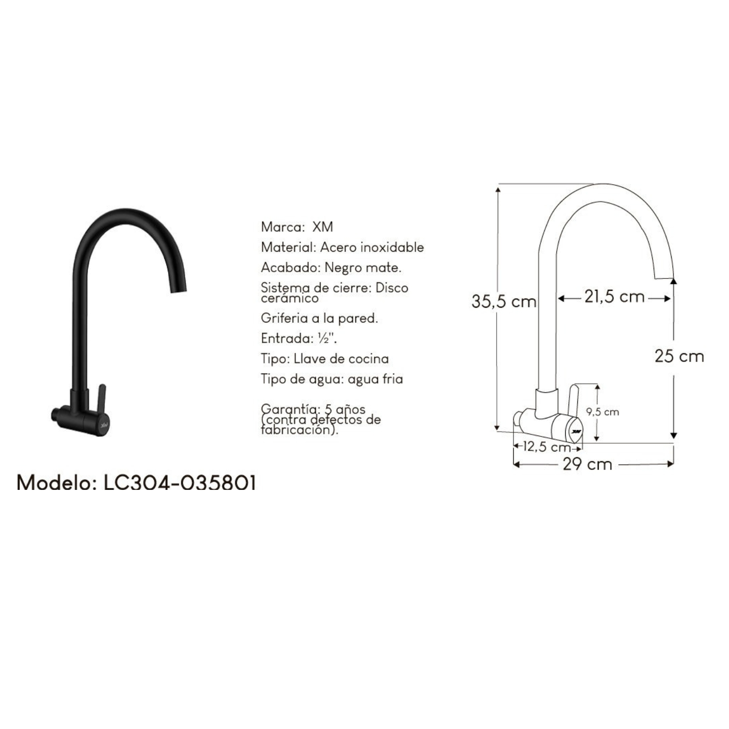 Grifería de Cocina Negra Mate – Diseño Moderno para Pared (Modelo LC304-035801)