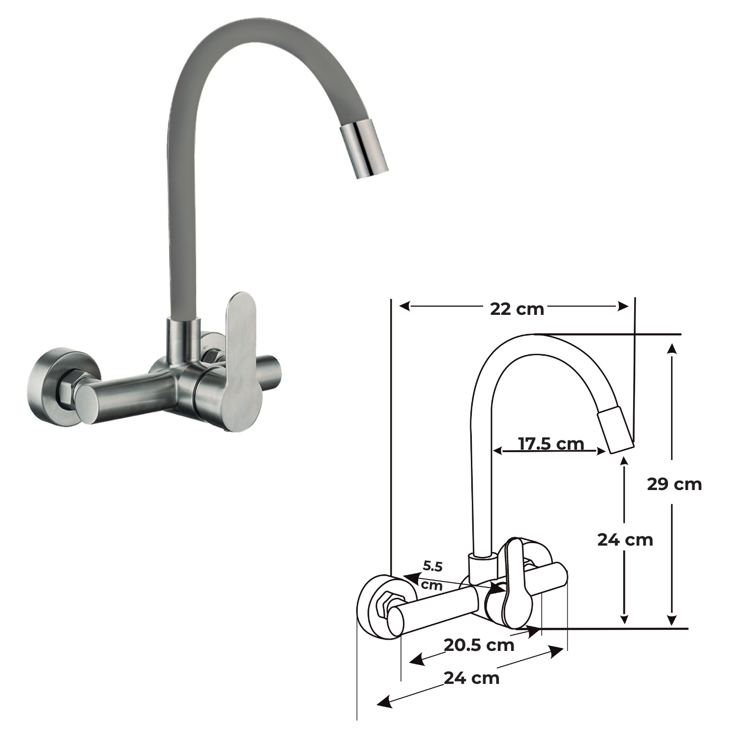 Grifería de pared para cocina con cuello flexible – Acero inoxidable 304