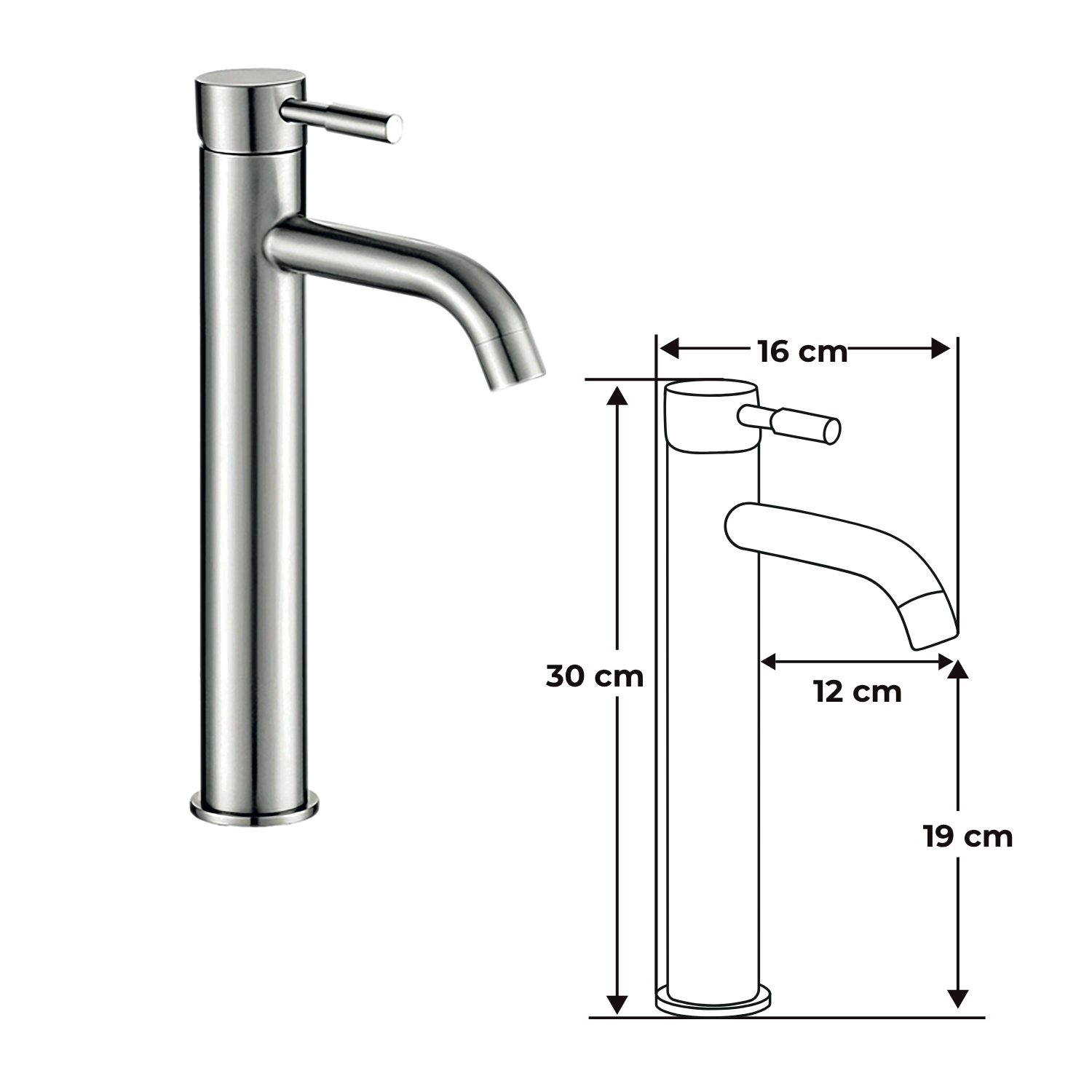 Su diseño alto y minimalista no solo aporta un toque sofisticado, sino que también brinda mayor comodidad de uso, ideal para lavabos tipo bowl o de mayor altura.