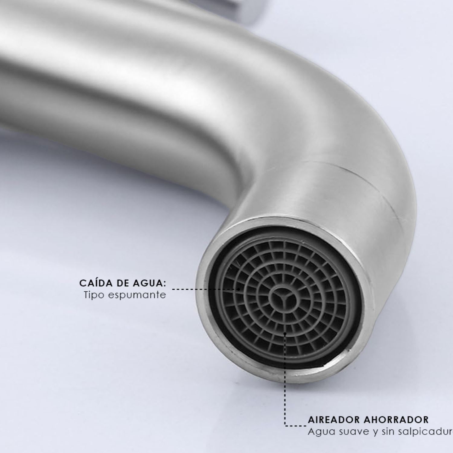 Cuenta con un sistema de cierre por disco cerámico que garantiza un manejo suave, preciso y sin fugas, además de un aireador integrado que optimiza el flujo de agua, reduciendo el consumo sin sacrificar rendimiento.
