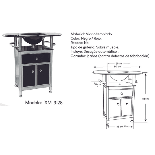 Mueble con lavatorio, compartimentos y puertas con sistema de cerrado suave.