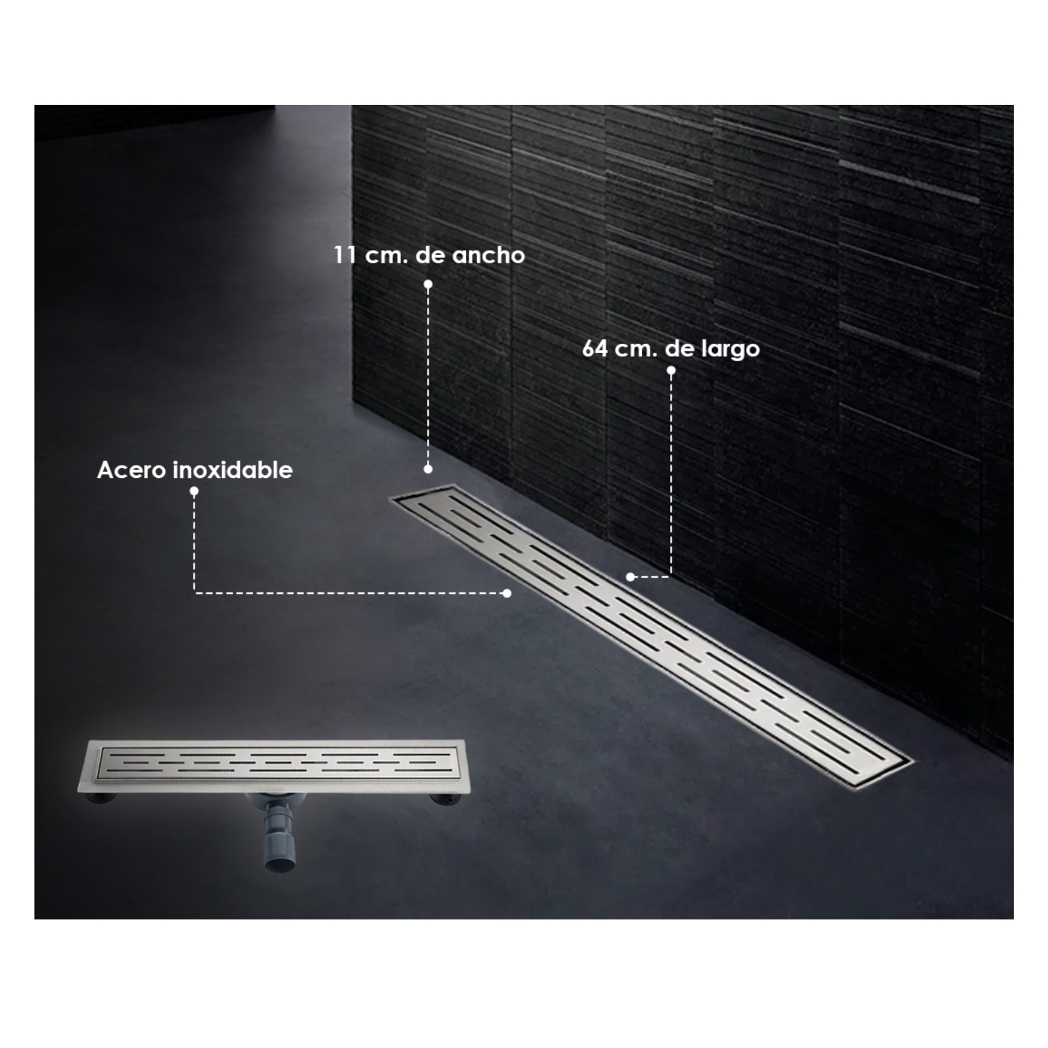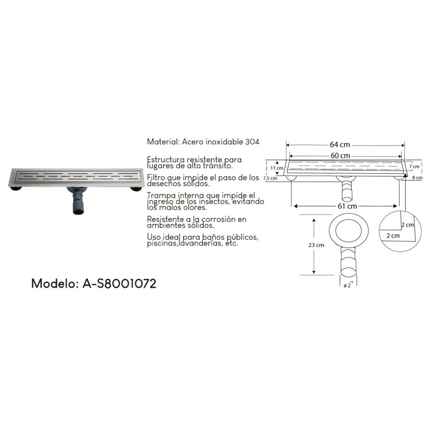 Optimiza el drenaje de tus espacios con esta canaleta lineal de alta calidad, diseñada para ofrecer máxima eficiencia, durabilidad y un acabado moderno. Fabricada en acero inoxidable 304, es resistente a la corrosión y perfecta para zonas húmedas o de alto tránsito.