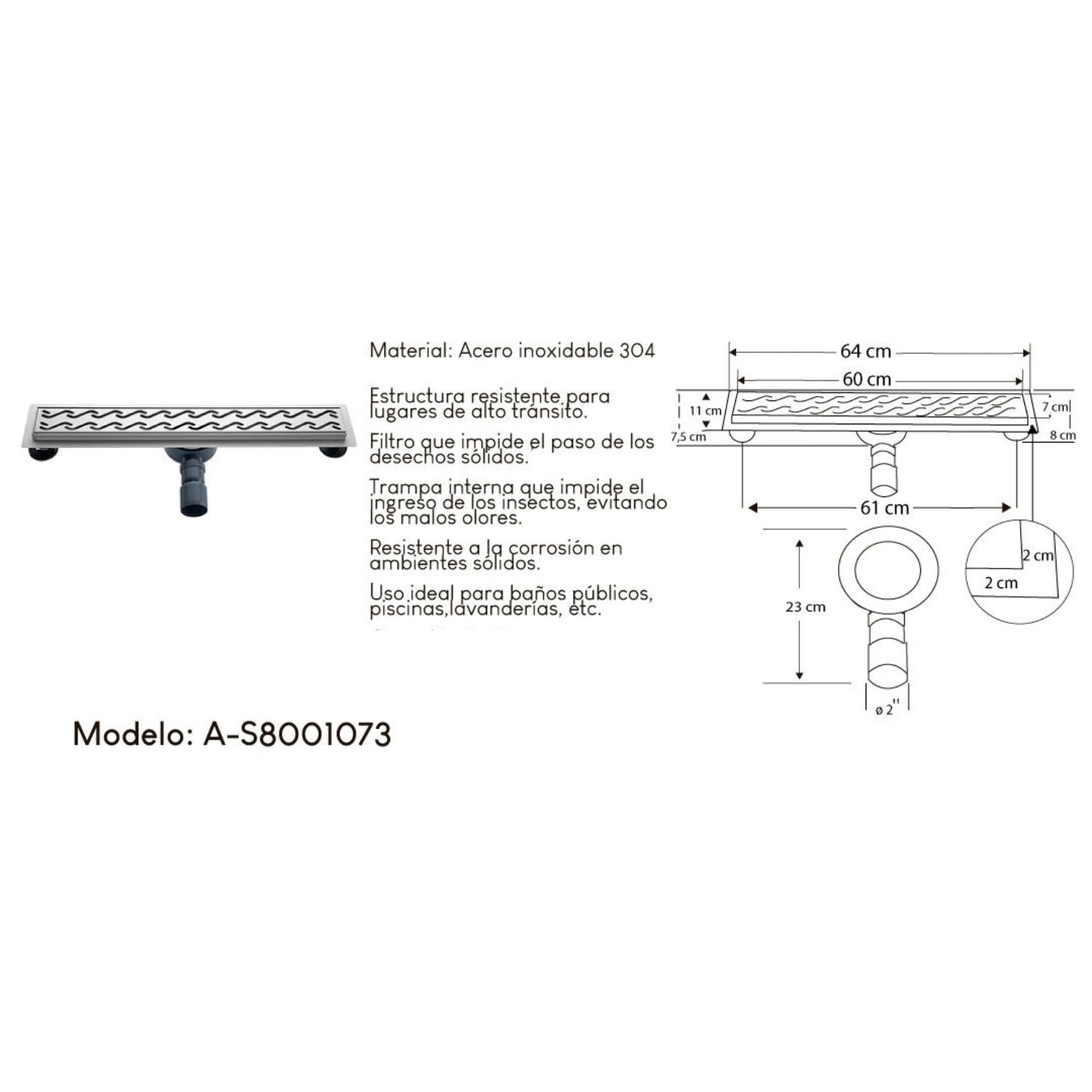 Optimiza el drenaje de tus espacios con esta canaleta lineal de alta calidad, diseñada para ofrecer máxima eficiencia, durabilidad y un acabado moderno. Fabricada en acero inoxidable 304, es resistente a la corrosión y perfecta para zonas húmedas o de alto tránsito.